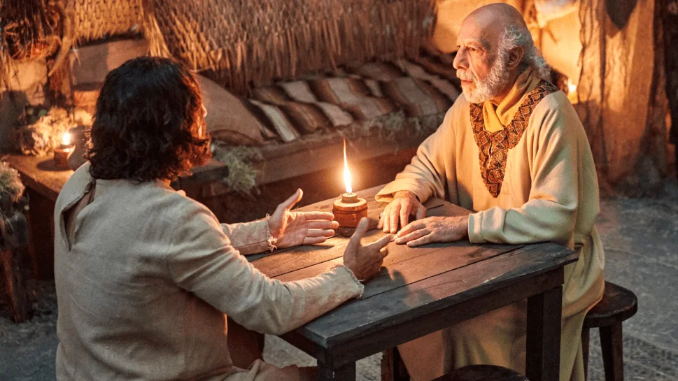 Iray amin’ireo fotoana mahery indrindra ao amin’ny The Chosen ny fotoana niresahan’i Nikodemosy sy Jesosy momba an’i Mosesy sy ilay menarana varahina (Jaona 3). Jesosy dia niresaka momban’ny Nomery 21, izay nahasitrana ny olona tamin’ny fijerena ilay menarana. Nanazava Izy fa Izy tenany mihitsy no "hasandratra" — nilazany mialoha ny fahafatesany, izay hanombohana Azy amin’ny hazofijaliana sy hanandratana Azy. Ity fizarana ity dia manasa anao hisaintsaina: Ahoana no fahitanao ny hazofijaliana? Toerana fijaliana ve, sa toerana iantombohan’ny fanasitranana sy ny famonjena?